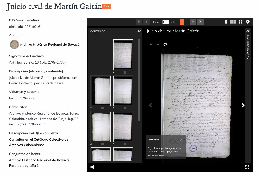 En el Archivo Colectivo encontrarás imágenes digitalizadas por Neogranadina en el Centro de Investigaciones Históricas “José María Arboleda Llorente” de la Universidad del Cauca en Popayán y en el Archivo Histórico Regional de Boyacá en Tunja.